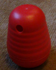 WobbelZunächst wird der Wobbel mit Leckerchen befüllt. Der Hund darf dann versuchen mit Pfote oder Schnauze den Wobbel so zu bewegen, dass das Futter hinausfällt. Durch das Gewicht im Boden des Spielzeugs, stellt er sich immer wieder von alleine auf und garantiert somit langen Spielspaß.Bitte beachten: Der Wobbel ist kein Kauspielzeug!
